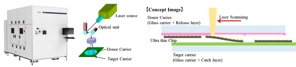 The technology is based on laser transfer technology used for applications such as bonding microLEDs (Light Emitting Diodes) to display substrates. It enables the production of less than 20 µm semiconductor chips used for advanced semiconductors or compound semiconductor chips with a thickness of less than 1 µm used for next-generation photonic integrated circuits to be produced with a tenfold greater efficiency than before while maintaining the accuracy required for mass production.